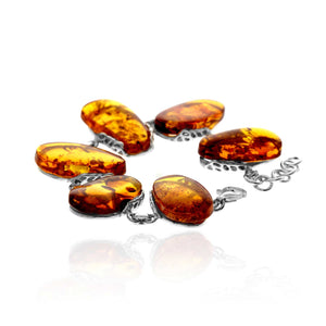 925 Sterling Silver & Genuine Cognac Baltic Amber Exclusive Unique Link Bracelet - BT0205