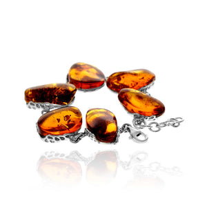 925 Sterling Silver & Genuine Cognac Baltic Amber Exclusive Unique Link Bracelet - BT0207