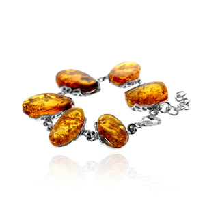 925 Sterling Silver & Genuine Cognac Baltic Amber Exclusive Unique Link Bracelet - BT0208